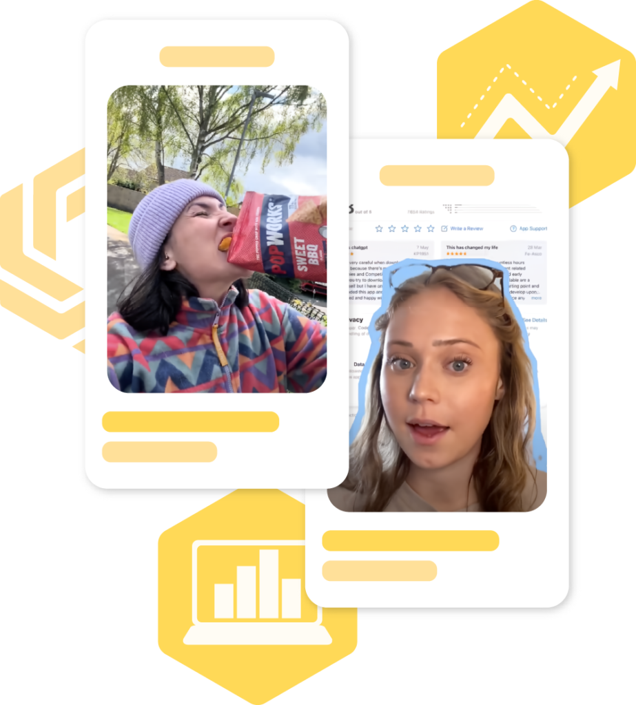 Market insights, website tracking and reporting. The 3 main objectives covered by our analytical department to help bring you a successful UGC campaign.